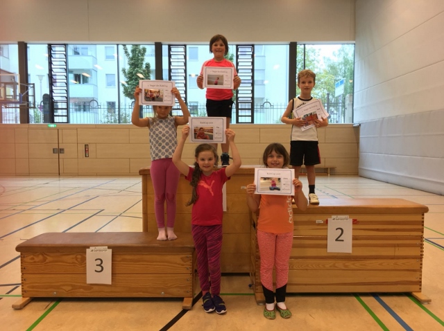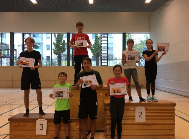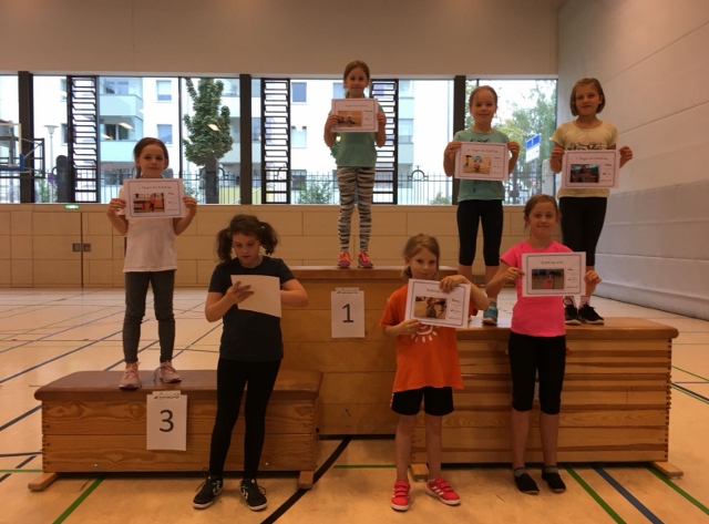 Reichlich drei Stunden, hunderte gestoppte Sekunden, unzählige Liegestütz, Drehungen, Grundschritte, Kopfstände und einige Schweißperlen später hielt jeder Teilnehmer des KidzCups strahlend eine Urkunde mit eigenem Bild in seiner Hand. Ingesamt elf Kinder aus drei Altersgruppen durften sich auf dem Treppchen über den erreichten 1./2. oder 3. Sieger freuen. Die Ergebnisse waren denkbar knapp, so gab es in zwei Gruppen je zwei zweite Sieger und dem ein oder anderen Sportler fehlte am Ende doch nur ein Punkt bis zum Treppchen. Glückwunsch an alle Teilnehmer zu den tollen Leistungen!