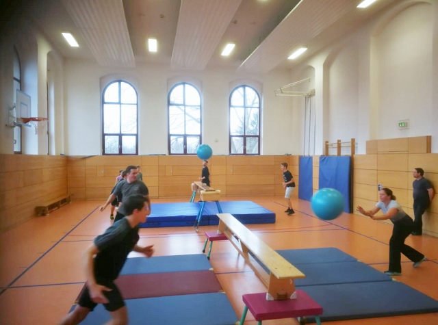 Auf den ersten Tag sollte noch ein zweiter folgen und auch dieser beinhaltete ein ideenreiches Programm mit vielen Spielen, die viel Spaß und Zusammenarbeit bereithalten sollten. Doch kein Spiel glich dem anderen: Wir spielten Riesen-Tischtennis (wobei ein Gymnastikball den Platz des Tischtennisballs einnahm), Spinnen- bzw. Käferfußball (nur so viel sei gesagt: die „Spieler“ hatten sechs bis acht Beine) und Brennball.