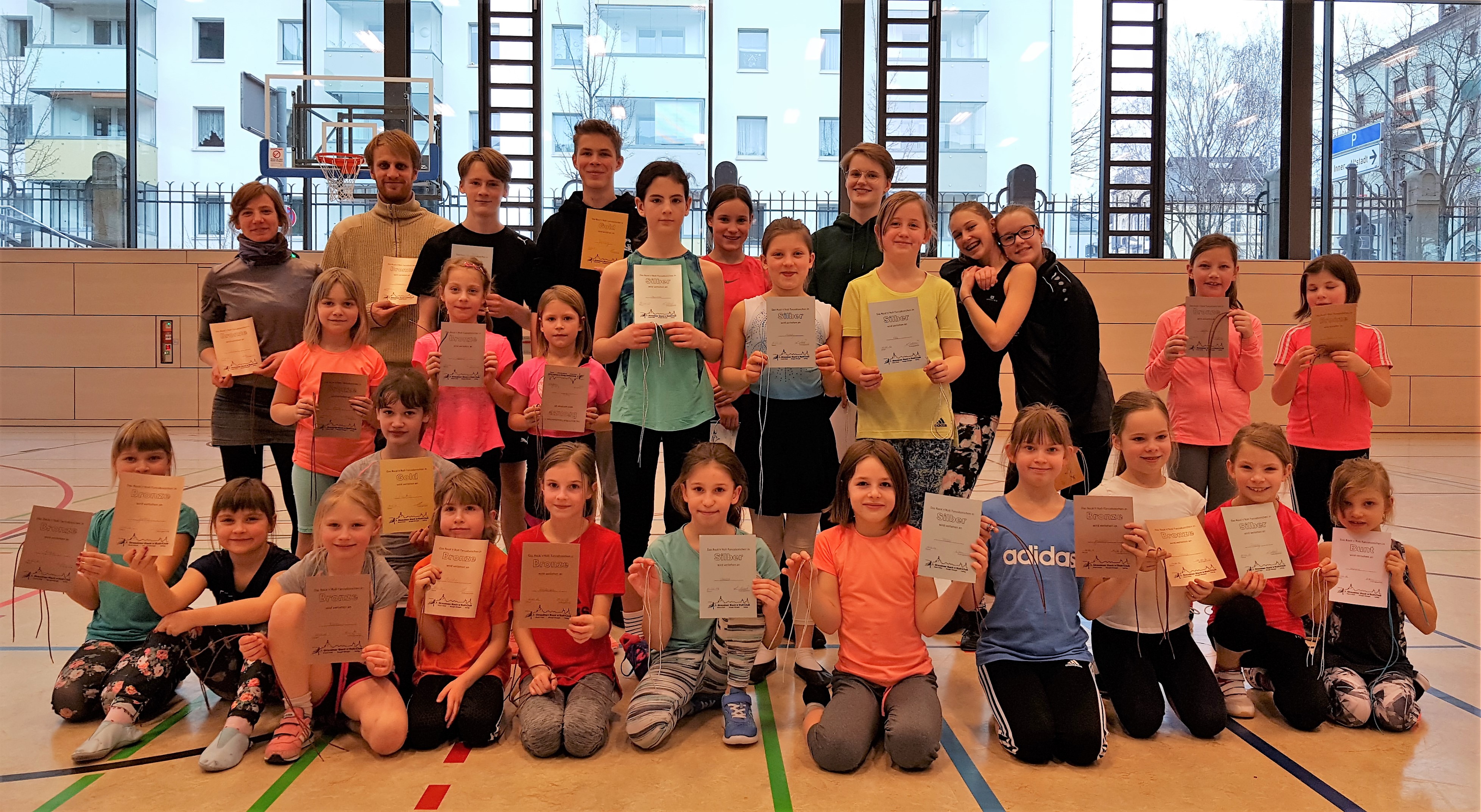 Zum Abschluss erhielt jeder Teilnehmer entsprechend der erreichten Punktzahl eine Urkunde für die Abzeichenstufe Bunt, Bronze, Silber oder Gold sowie einen Schnürsenkel in der entsprechenden Farbe für den Trainingsschuh, damit man das Abzeichen auch jederzeit im Training bei sich tragen kann. Wir freuen uns, dass so viele Kinder und Jugendliche solche tollen Leistungen erzielt haben und sind schon gespannt auf das nächste Mal!