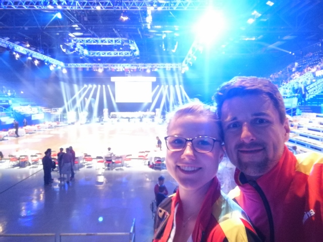 Eine Woche nach dem Kadertraining konnten die beiden am größten internationalen Turnier teilnehmen, der WM in Marsaille. Den Tag vor dem Wettkampf nutzten die Kaderpaare gemeinsam um die Stadt zu erkunden. Gegen Mittag am 7.10. startete dann das Turnier mit der Slow-Vorrunde für alle 36 Paare. Ca. eine Stunde später, nach der Vorrunde der BW Formationen begann die Fast-Runde. Mit beiden Runden waren die beiden zufrieden. Um die Hoffnungsrunde kamen die sie aber nicht herum und diese lief leider nicht optimal. Die Punkte reichten am Ende nur für den 34. Platz. Wenn man sich aber bewusst macht, dass an diesem Tag nur die besten Paare zum Turnier angetreten sind, kann man schon damit zufrieden sein, dabei gewesen zu sein.