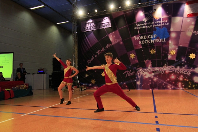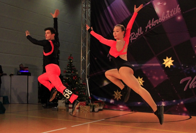 Celina und Jeremy tanzten ihre Finalrunde direkt nach Mina und Stefan und zeigten eine ebenso starke Kür wie in der Vorrunde. Einzig die neue Akrobatik Rückengrätsche-Doppelgrätsche-Schwan war diesmal nicht ganz so hoch ausgeführt, sodass sie am Ende zwar etwas weniger Punkte als in der Vorrunde ehielten, jedoch mit einem fünften Platz und dem sächsischen Junioren-Landesmeistertitel sehr zufrieden sein können.
