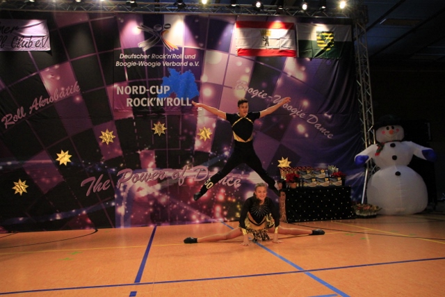 In der Juniorenklasse starteten gleich zwei Dresdner Paare – beide sogar mit neuem Trikot. Mina Neumärker und Stefan Graichen waren in der Juniorenklasse das Paar mit der höchsten Akrobatikschwierigkeit und auch tänzerisch haben sie sich im Laufe des letzten Jahres enorm gesteigert. Mit einer sehr sicheren Performance schafften sie es nah der Vorrunde auf den vierten Platz und damit klar ins Finale. Celina Nischan und Jeremy Kionka konnten nach dreimonatiger Trainingspause erst im November wieder anfangen zu trainieren, fanden aber schnell in ihre gute Form zurück und bauten gleich noch eine neue Akrobatik ins Programm. Trotzdem war die Spannung groß, ob alle Elemente wie geplant funktionieren – und das taten sie dann auch. Sie brillierten mit tänzerischer Leichtigkeit und platzierten sich nach der Vorrunde mit 41 Punkten knapp vor ihren Teamkollegen auf dem dritten Platz.