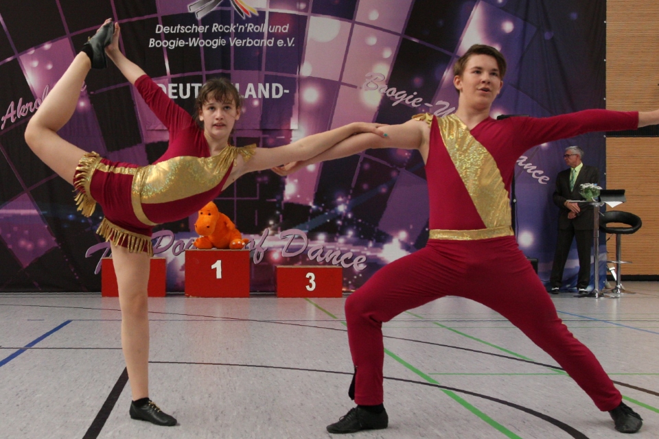 Schon in der ersten Runde der Schülerklasse legten Saskia und Pierre richtig gut los und schafften es mit einer ihrer saubersten und dynamischsten Runden direkt ins Semifinale und sparten sich somit den Umweg über die Hoffnungsrunde. Mit einer weiteren sauberen Runde, allerdings auf ein sehr schwierigen Musiktitel, erreichten sie dann verdient die Endrunde und außerdem: die Qualifikation zur DEUTSCHEN MEISTERSCHAFT! Mit dieser Euphorie im Gepäck absolvierten die beiden die dritte Runde ebenfalls sicher sowie sehr ausdrucksstark und ertanzten sich somit einen spitzenmäßigen 5. Platz!